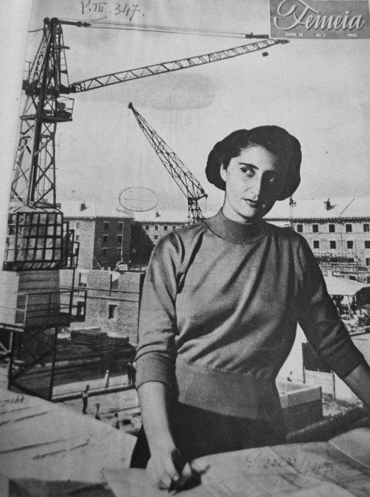 Aici, în fotografie, mai jos, e altcineva: inginer constructor Ani Fighel, una dintre principalele autoare ale proiectelor de rezistență ale Teatrului de operă și balet al RPR, ale Stadionului 23 august, ale blocurilor muncitorești din Bulevardul Muncii, Vatra Luminoasă și Balta Albă din București.